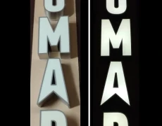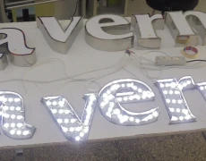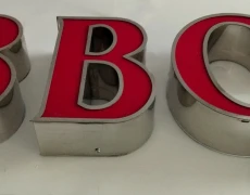 Tα κουτιαστά ή μεταλλοπλαστικά γράμματα κατασκευάζονται από γαλβανιζέ ή ανοξείδωτη λαμαρίνα και όψεις από plexiglass. Τα υλικά των γραμμάτων κόβονται στο laser, ενώ τα γράμματα είναι χειροποίητα με ειδική κατεργασία (καλάι, οξύ και φωτιά). Επιπλέον μπορούν να κατασκευαστούν εξ’ ολοκλήρου από plexiglass. Εσωτερικά τοποθετείται φωτισμός LED modules με αδιάβροχα τροφοδοτικά, ή εναλλακτικά νεον. Η βαφή των γραμμάτων αποτελείται από adex, αστάρι και χρώμα αυτοκινήτου (κωδικοί RAL).