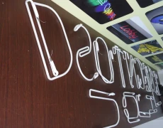 Οι γνωστές σε όλους επιγραφές από νεον, είναι ένας τύπος χειροποίητης κατασκευής που τραβάει τα βλέματα και δίνει μια πιο ρετρό ατμόσφαιρα στο χώρο που θα τοποθετηθει. Μπορεί να δημιουργηθεί σε οποιοδήποτε σχήμα, διαστάσεις, και φυσικά σε μεγάλη ποικιλία χρωμάτων. Η τοποθέτηση περιλαμβάνει τους φωτοσωλήνες νέον, ευρωπαικούς αδιάβροχους μετασχηματιστές, και καλώδια υψηλής τάσεως με μονωτήρες.