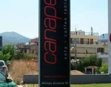 Οι επιγραφές τύπου πυλώνα ή κολώνας, είναι κατακόρυφες κατασκευές που κατασκευάζονται με μεταλλικό σκελετό, ενώ η όψη ή οι όψεις του αποτελούνται από υλικά όπως plexiglass, πολυκαρβονικά φύλλα, αυτοκόλλητα από βυνυλιο, κλπ. Εσωτερικά υπάρχει τις περισσότερες φορές φωτισμός, ο οποίος δημιουργείται από λάμπες τύπου LED T8. Πρόκειται για ιδιαίτερα εντυπωσιακές κατασκευές, που τραβούν πάντα την προσοχή στην επιχείρηση που τοποθετούνται.